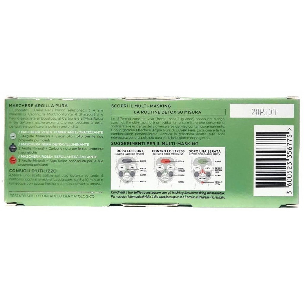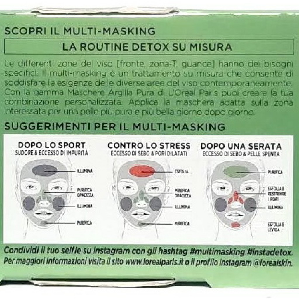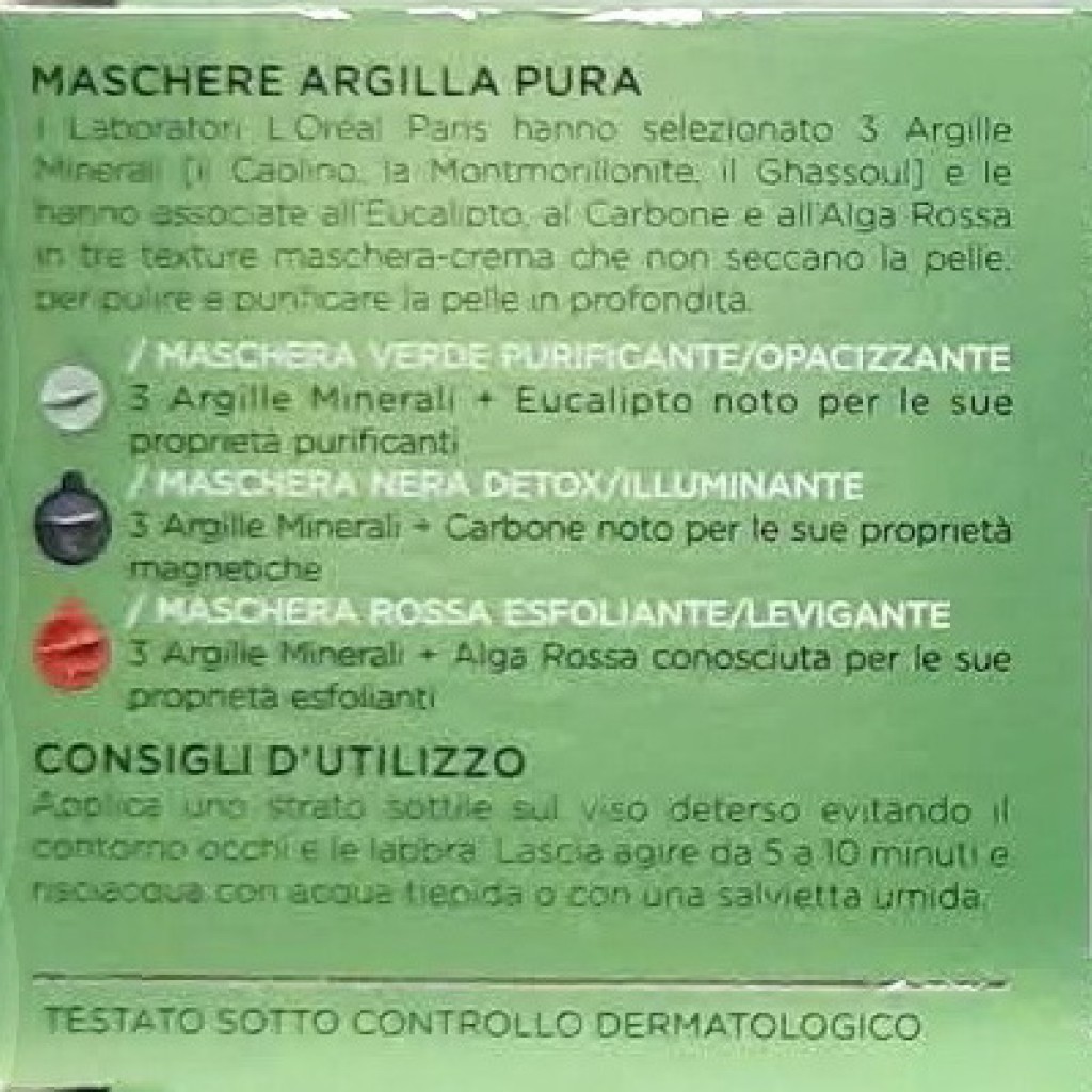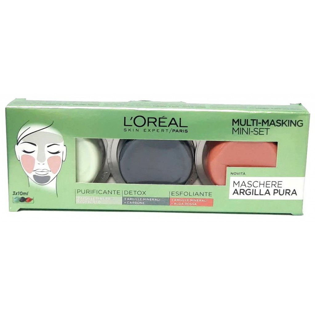Estendi la ricerca a: struccanti e pulizia viso, igiene e cura della persona, purificante, detox, esfoliante, argille, minerali, carbone, alga, eucalipto, l'oreal, skin, expert, multi, masking, maschere, viso, argilla, pura, mini, set, tris