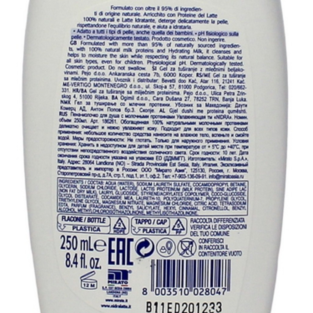 Estendi la ricerca a: bagnoschiuma e docciaschiuma, igiene e cura della persona, nidra, docciaschiuma, 250ml, doccia, latte, idratante, con, proteine, del, latte