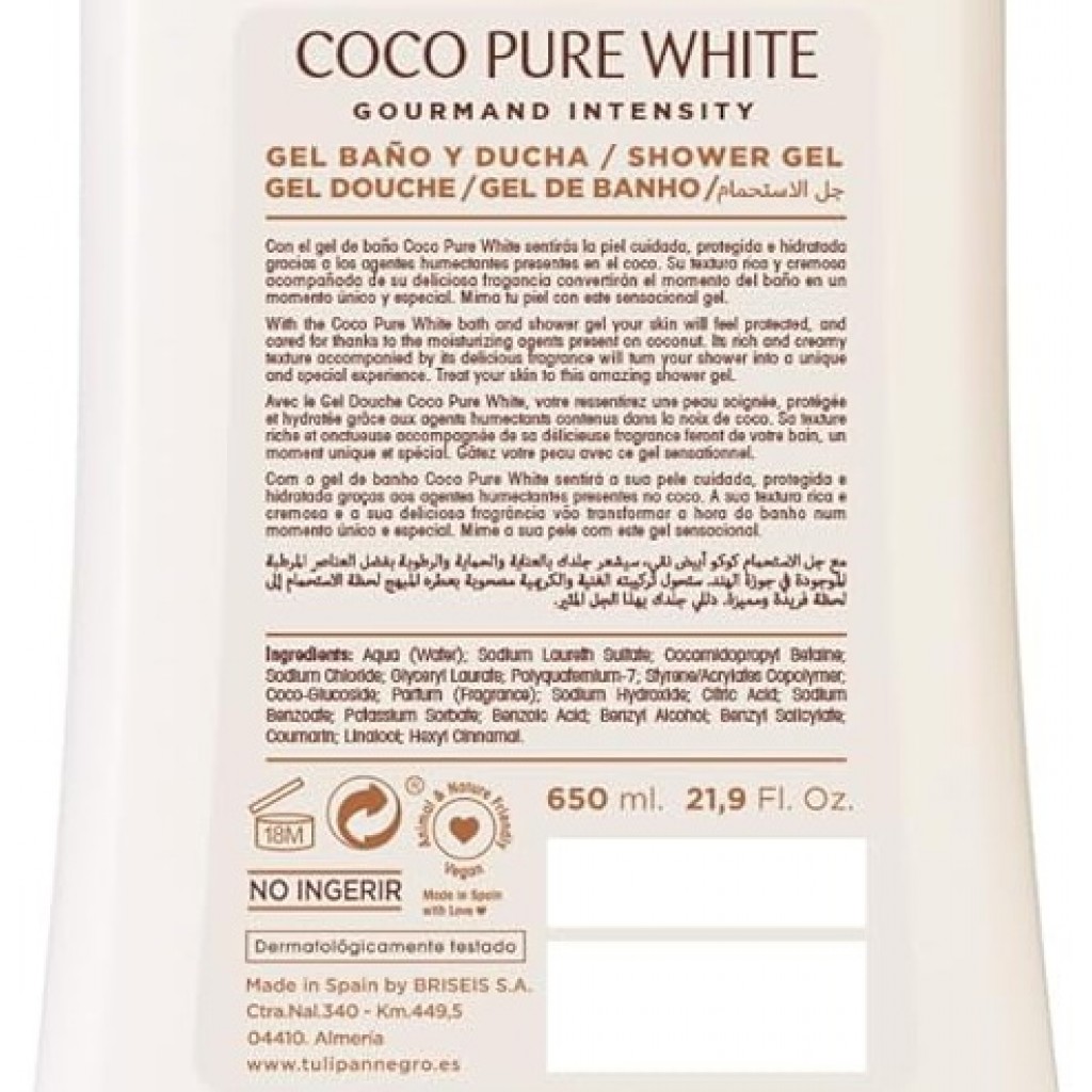 Estendi la ricerca a: bagnoschiuma e docciaschiuma, igiene e cura della persona, tulipan, negro, bagnoschiuma, 650ml, coco, pure, white, pelle, extra, morbida