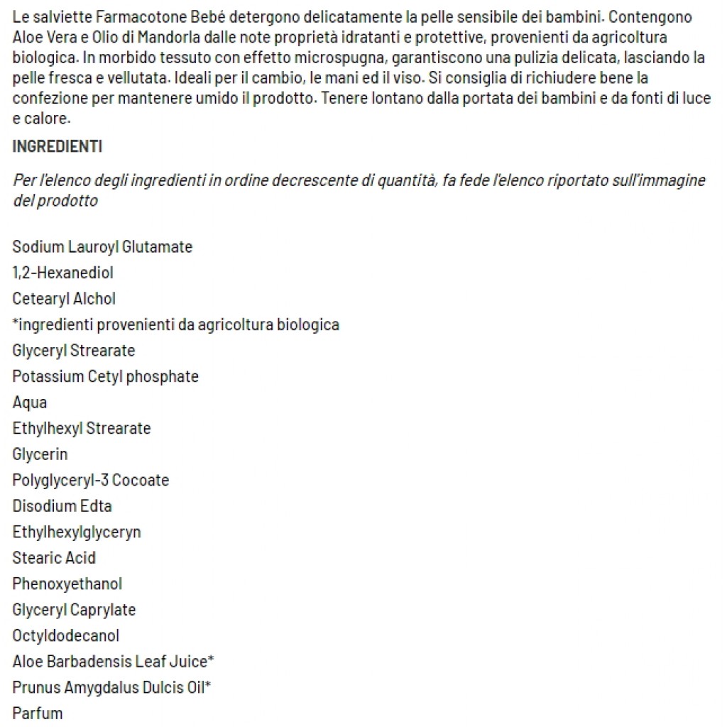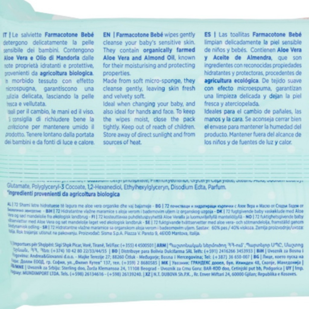Farmacotone Natural Bebe' 72 Salviette Detergenti Aloe Vera E Olio Mandorla
