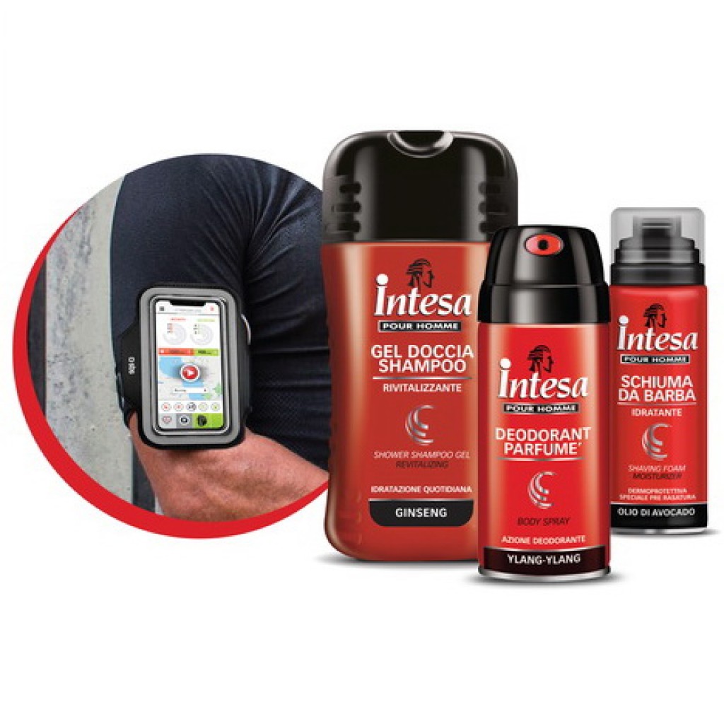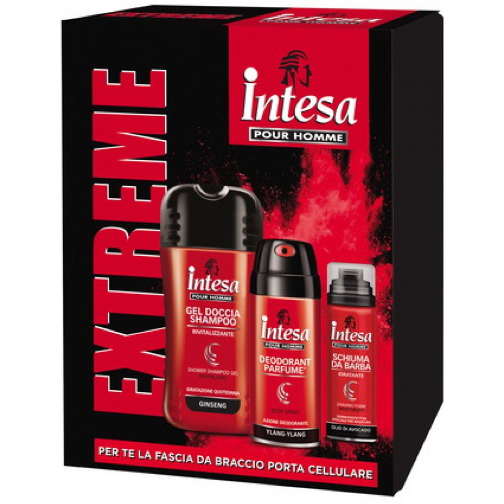 Intesa Pour Homme: Doccia 250ml + Deo 150ml + Schiuma Barba 50ml + Fascia