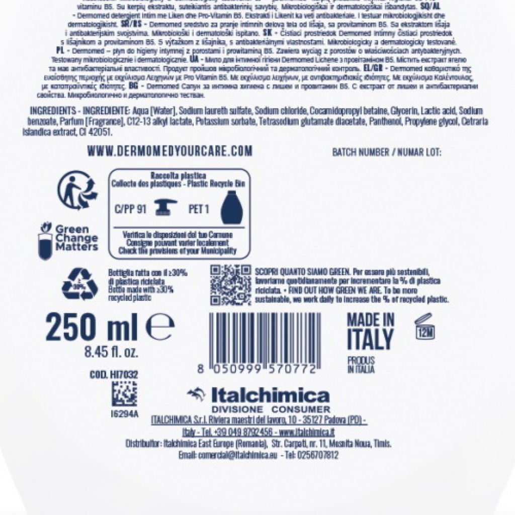 Dermomed Detergente Intimo 250ml - Lichene - Con Proprieta' Antibatteriche