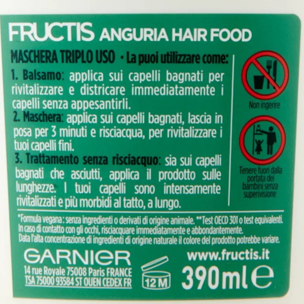 Fructis Hair Food Maschera Capelli 390ml - Anguria - Rivitalizzante
