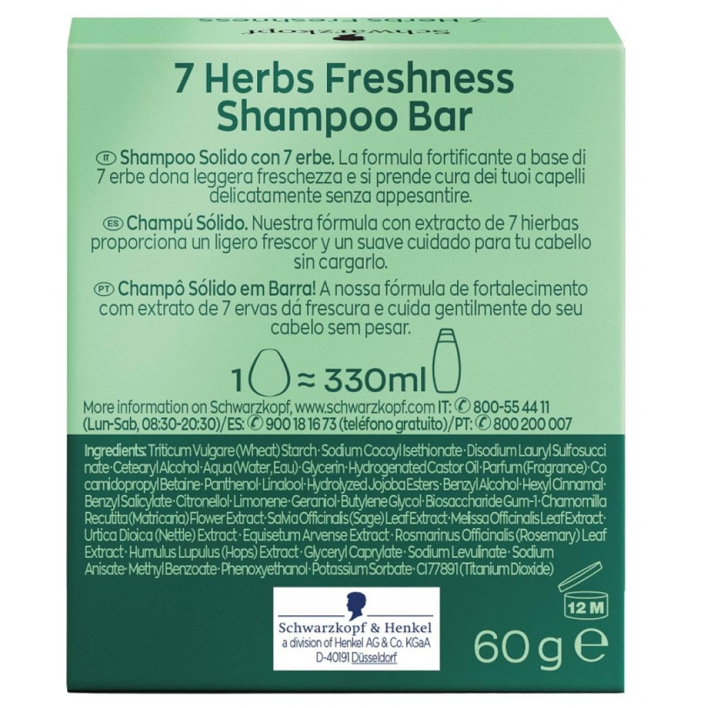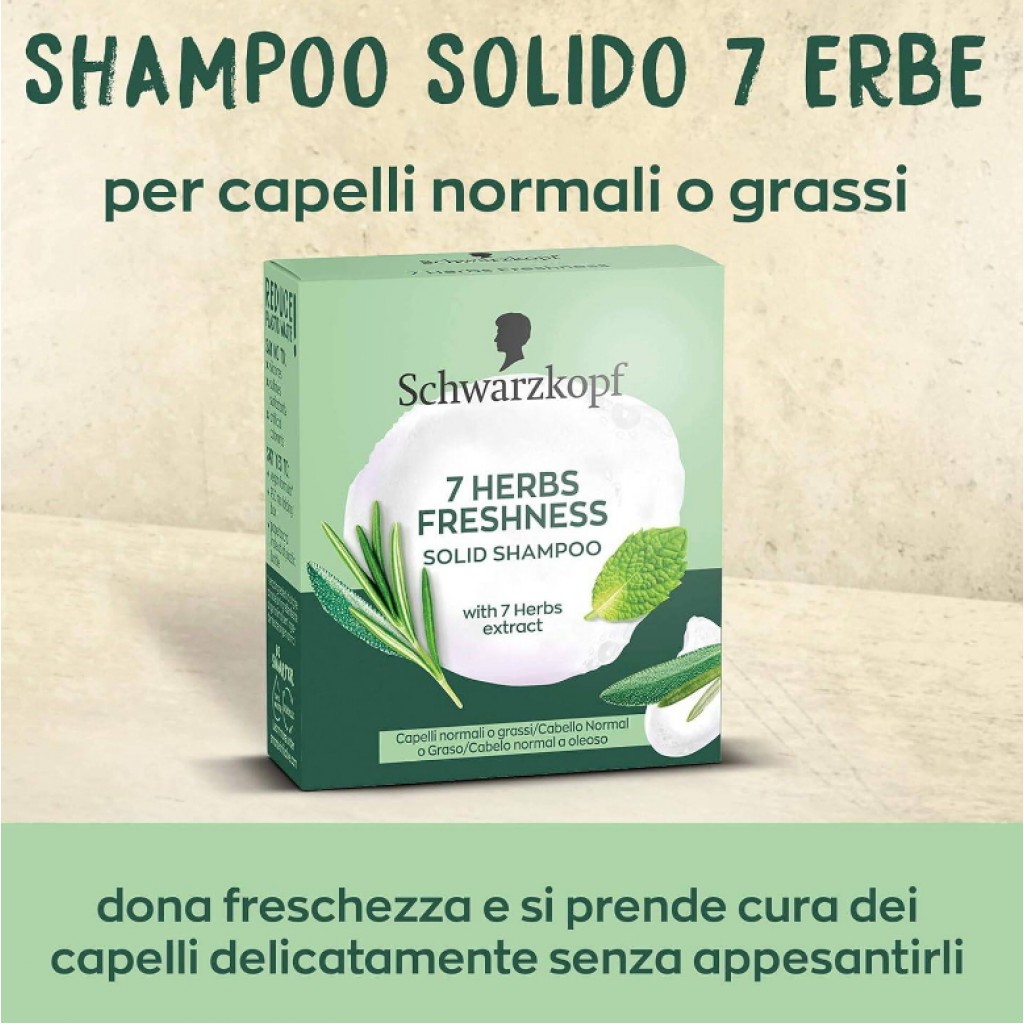 Schwarzkopf Shampoo Solido - 60g - Con Estratti Delle 7 Erbe - Freshness