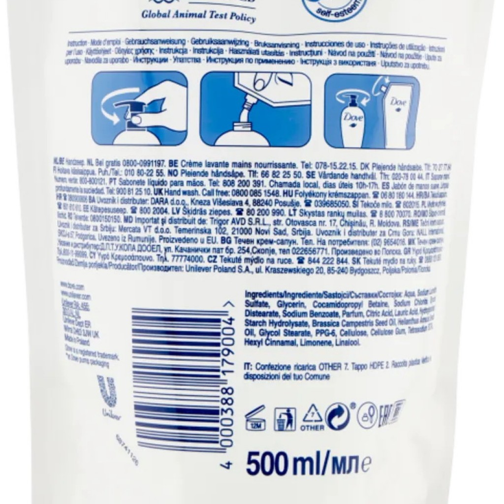Dove Sapone Liquido 500ml - Classico - Original - Busta Ecoricarica