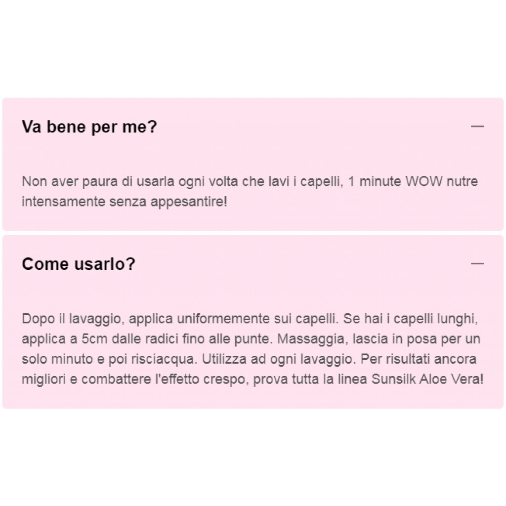 Estendi la ricerca a: balsamo e trattamenti per capelli, igiene e cura della persona, maschera, crema, balsamo, sunsilk, 1minute, wow, trattamento, intensivo, 180ml, aloe, vera