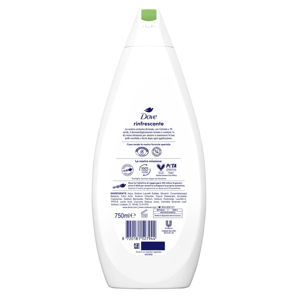 Dove Bagnodoccia - 750ml - Rinfrescante - Con Cetriolo E Te' Verde
