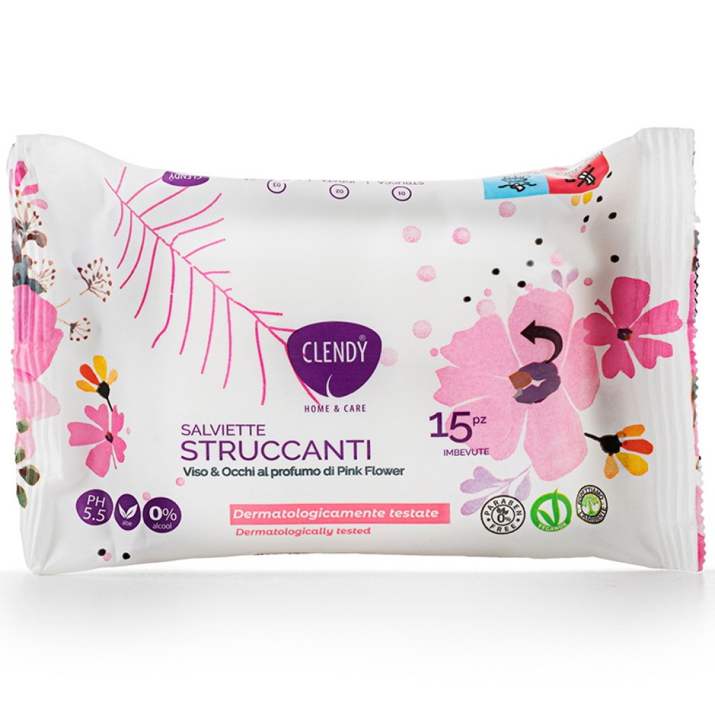 Clendy 15 Salviettine Struccanti - Viso & Occhi - Pink Flower