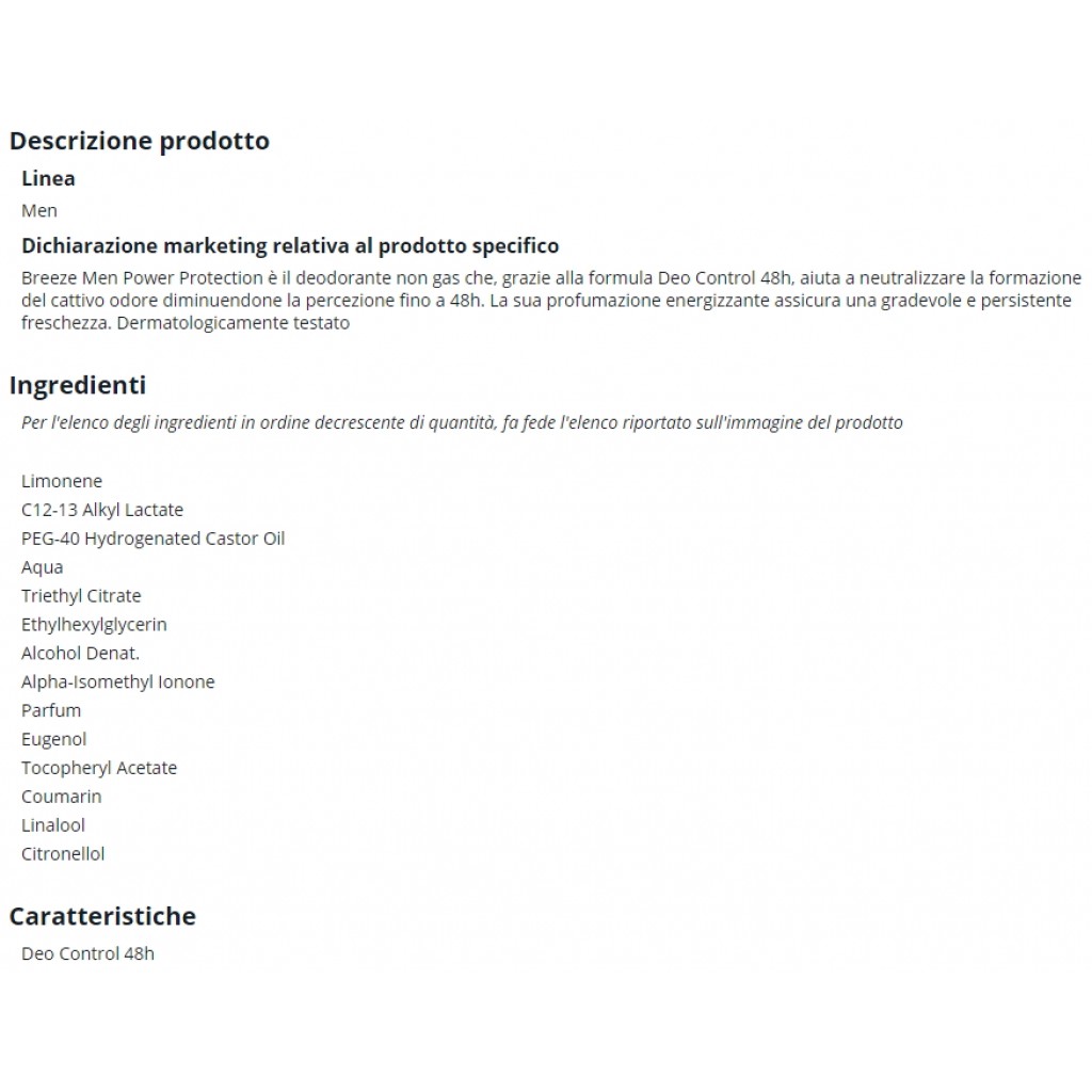 Estendi la ricerca a: deodoranti personali, igiene e cura della persona, breeze, deodorante, squeeze, no, gas, 100ml, men, power, protection, 48h