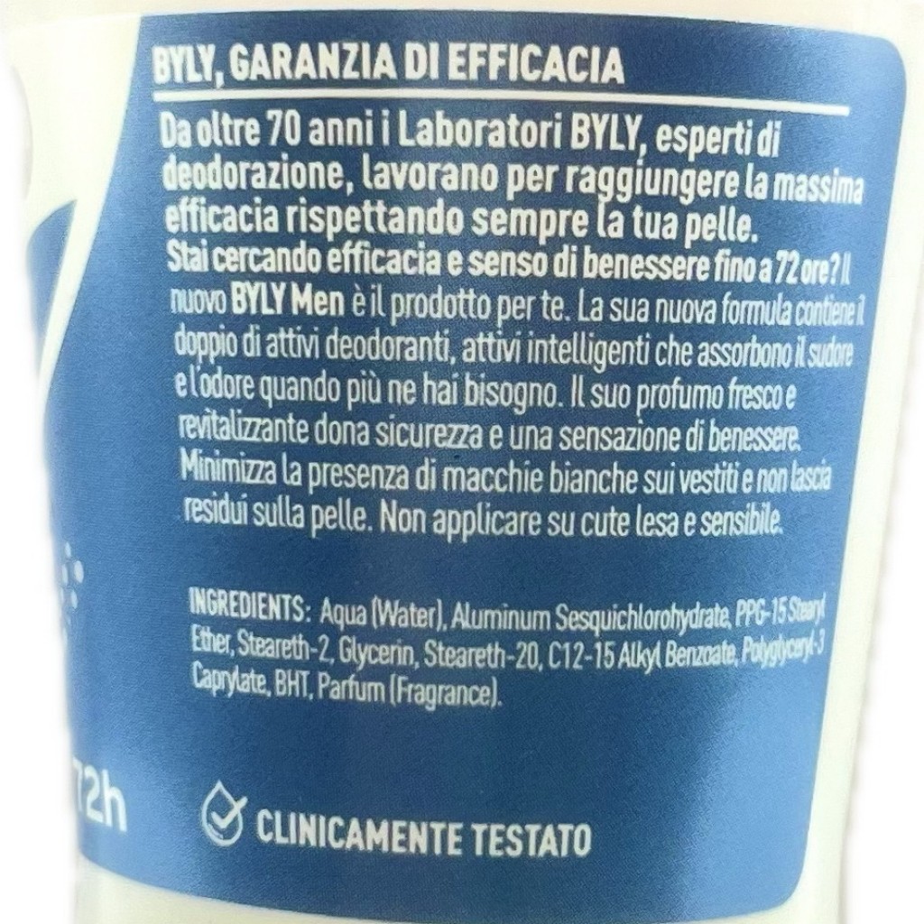 Estendi la ricerca a: deodoranti personali, igiene e cura della persona, byly, deodorante, roll, on, 50ml, 72h, for, men