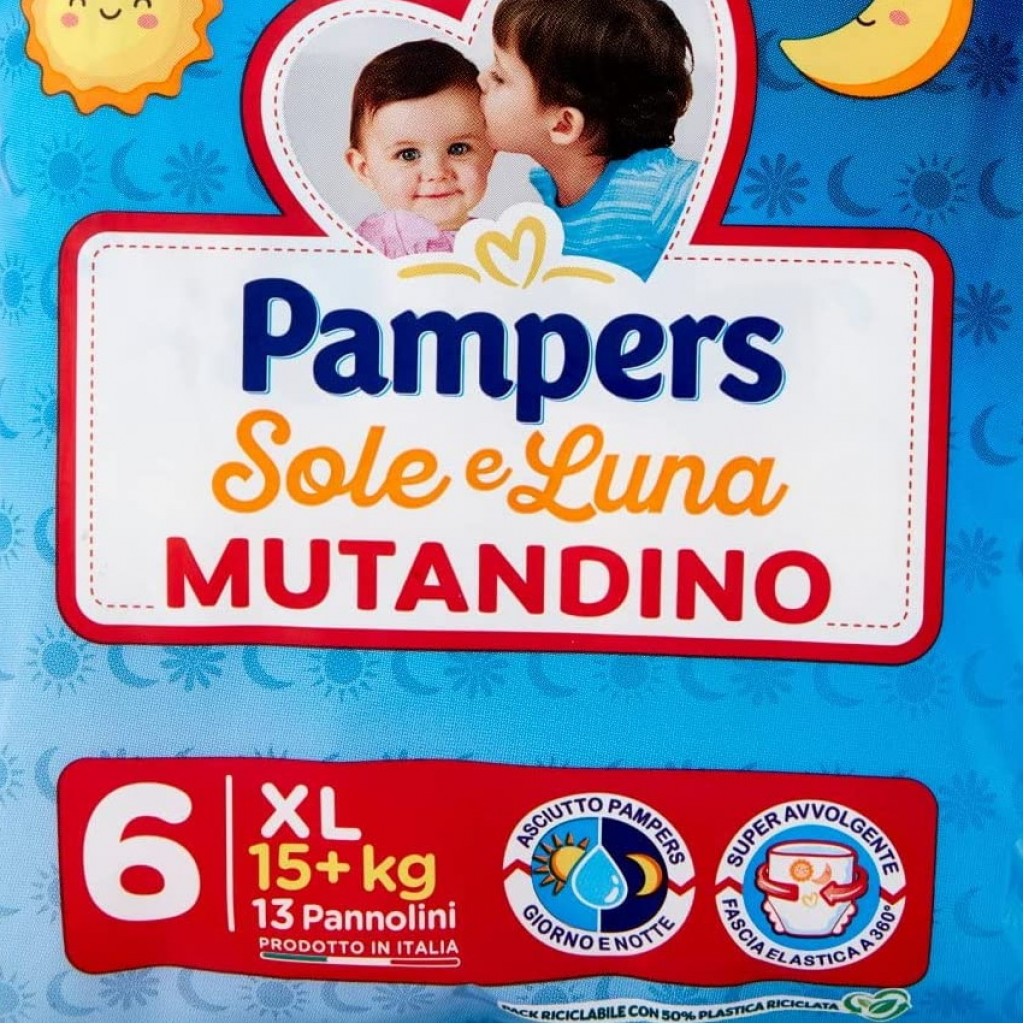 Pampers Sole E Luna Mutandino 13 Pannolini Taglia 6 Xl Extra Large 15+ Kg