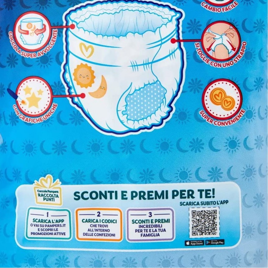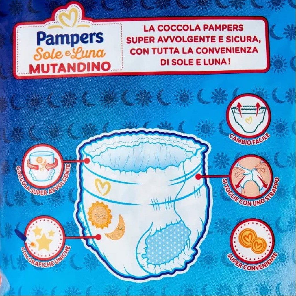 Estendi la ricerca a: pannolini per bimbi e adulti, igiene e cura della persona, pampers, sole, luna, mutandino, 13, pannolini, taglia, xl, extra, large, 15+, kg