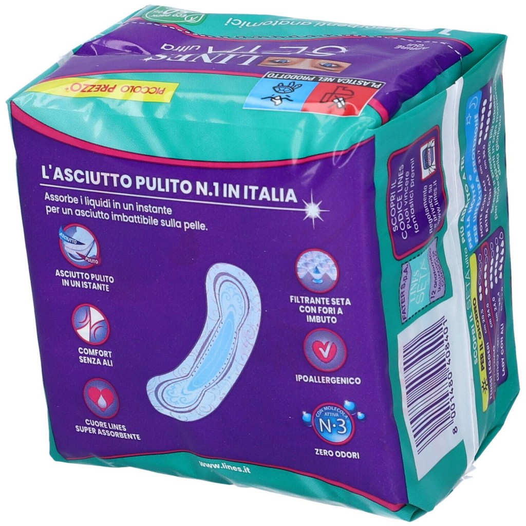 Lines Seta Ultra Assorbenti - 12 Pezzi - Anatomico - Verde