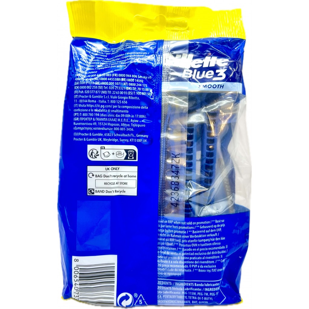 Estendi la ricerca a: lame e rasoi uomo o donna, igiene e cura della persona, gillette, blue, rasoi, radi, getta, trilama, 12, pezzi, smoth