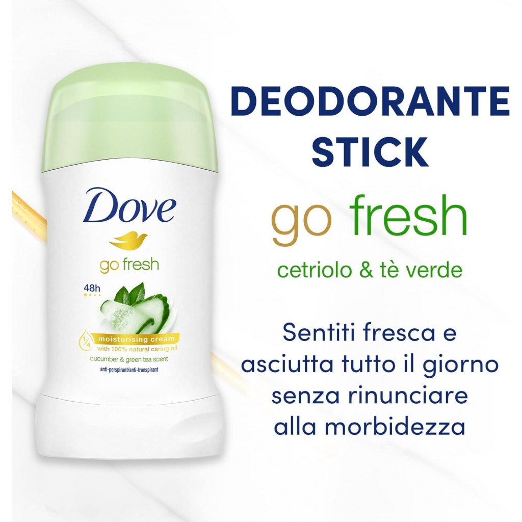 Dove Deodorante Stick 40ml - 48h No Alcool - Go Fresh - Cucumber