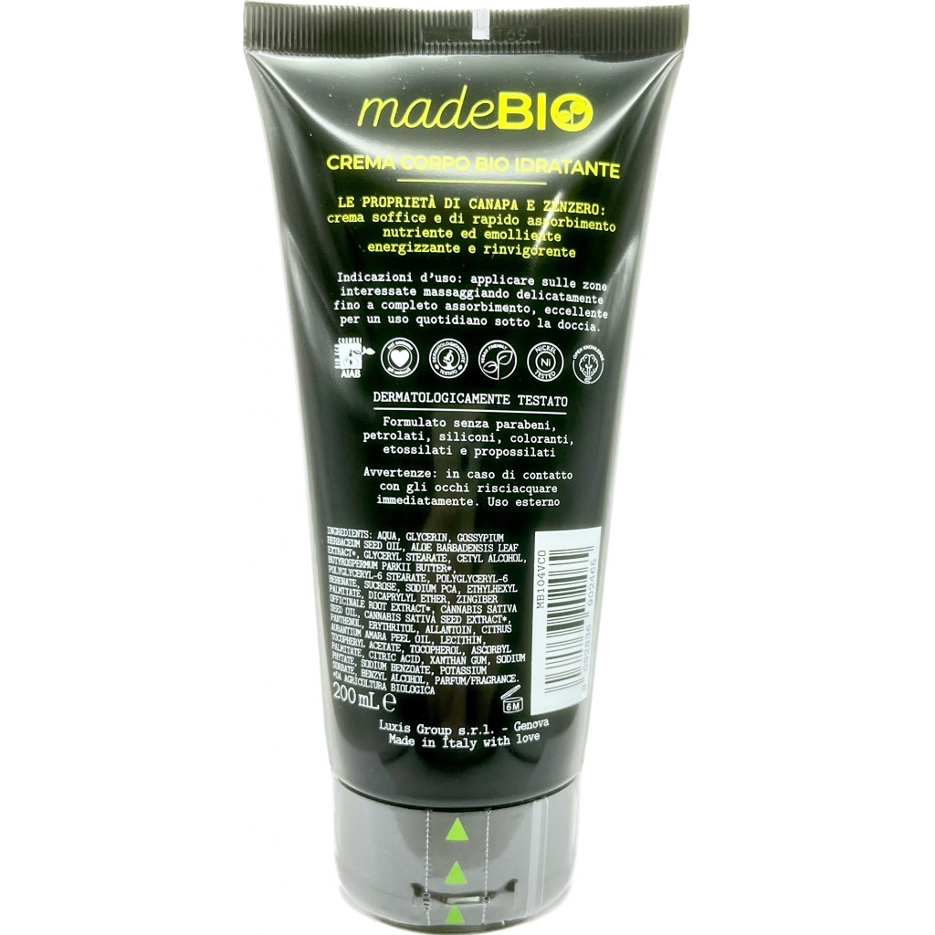 Madebio Crema Corpo - 200ml - Con Bio Canapa E Zenzero