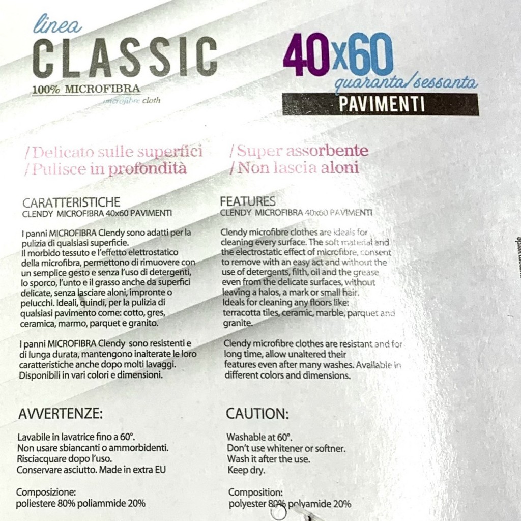 Clendy Panno Microfibra Pavimenti - 40x60 Cm - Vari Colori