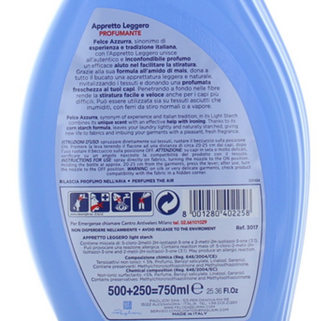 Felce Azzurra Paglieri Appretto Leggero 750ml - Profumato Con Amido Di Mais