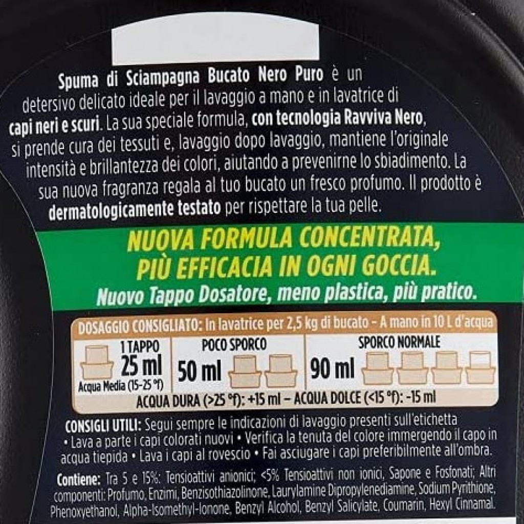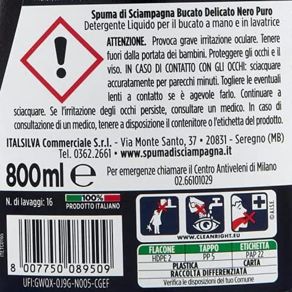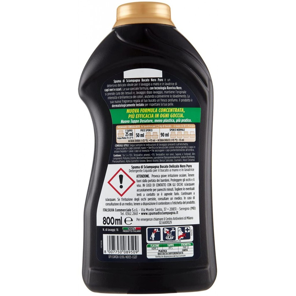 Spuma Di Sciampagna Nero Puro Detersivo Per Bucato A Mano E Lavatrice 800ml