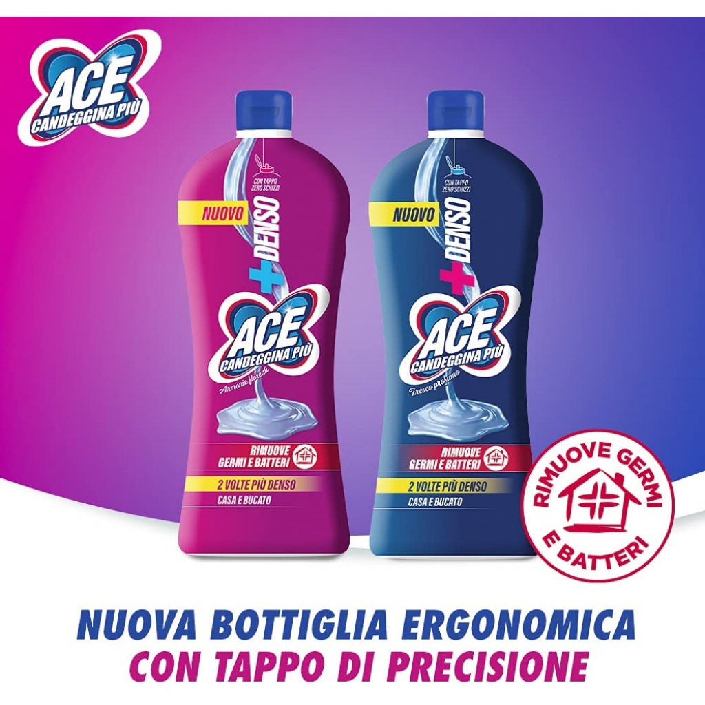 Estendi la ricerca a: additivi, smacchiatori, candeggianti, prodotti per bucato e tessuti, ace, denso+, candeggina, casa, bucato, litro, armonie, floreali