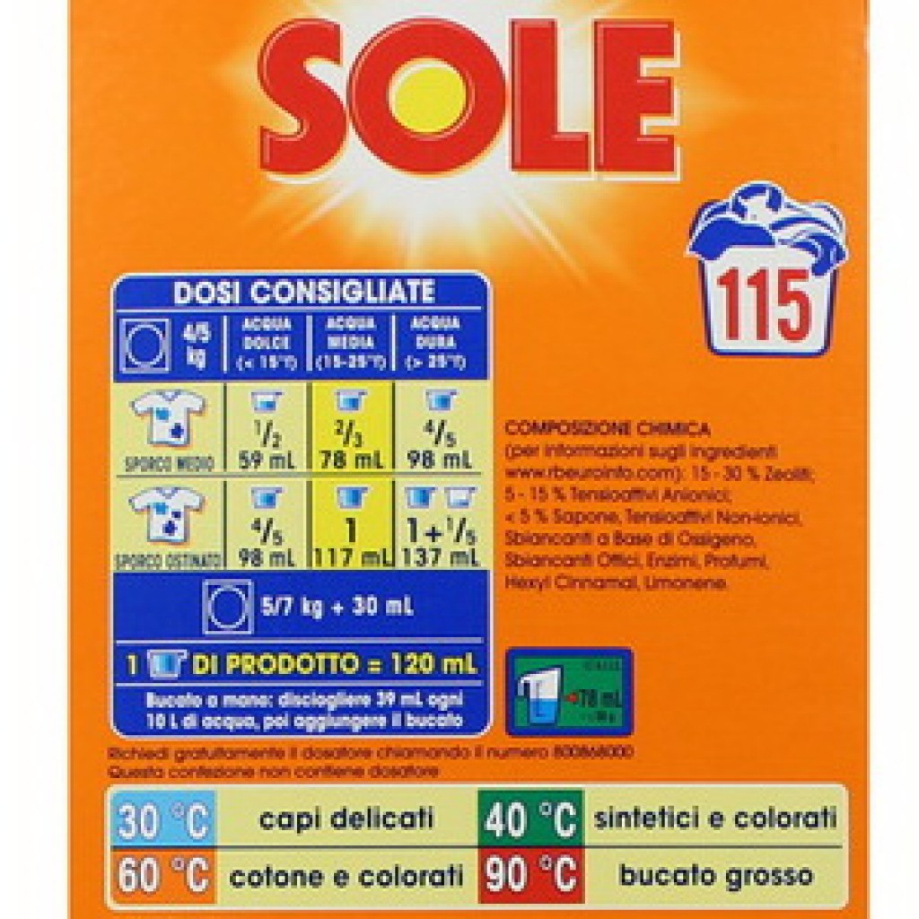 Sole Detersivo Lavatrice In Polvere - Fusto Da 115 Misurini - 5750g