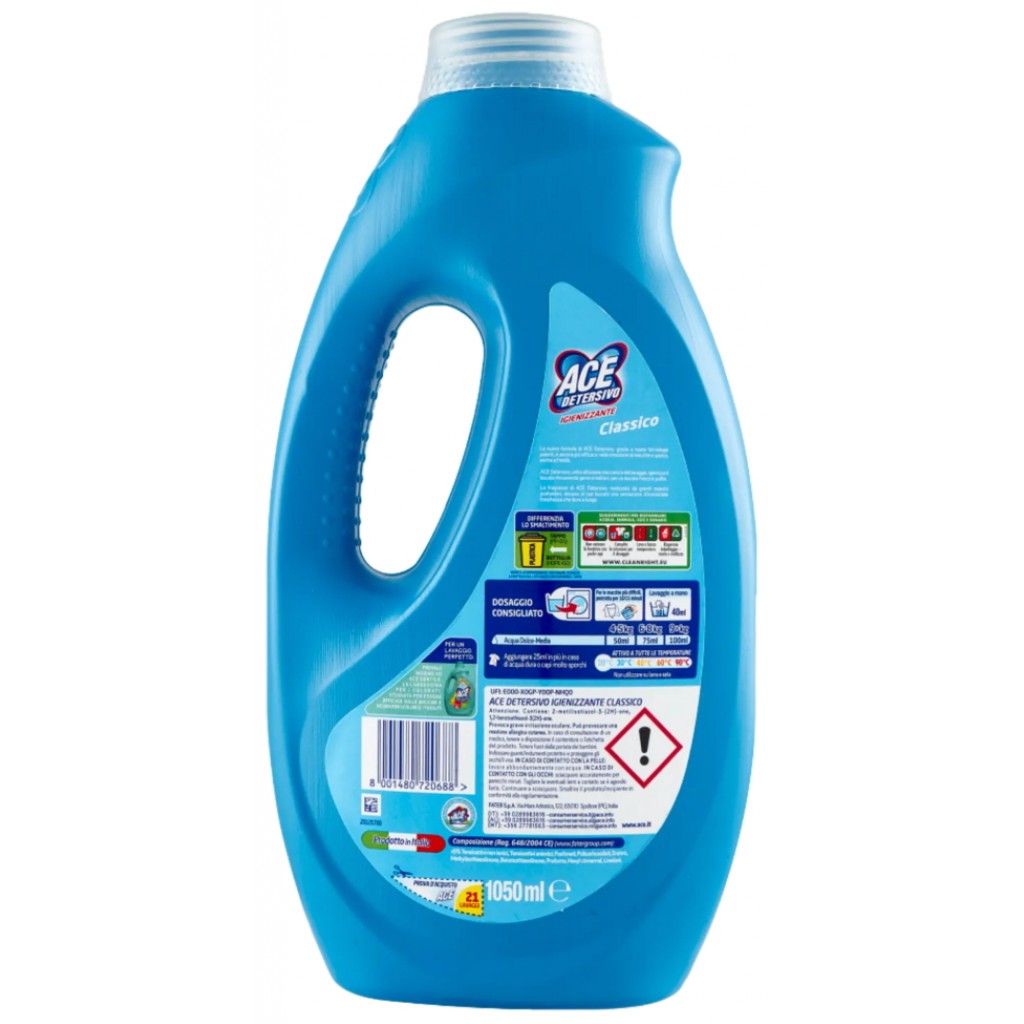 Ace Detersivo Lavatrice Liquido - 21 Lavaggi - 1050ml - Classico