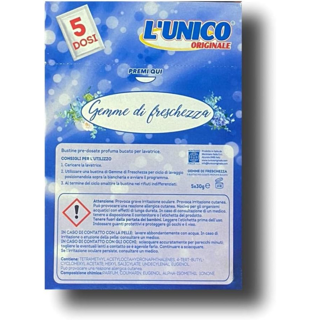 L'unico Gemme Di Freschezza - 4 Bustine Profuma Bucato - Primavera