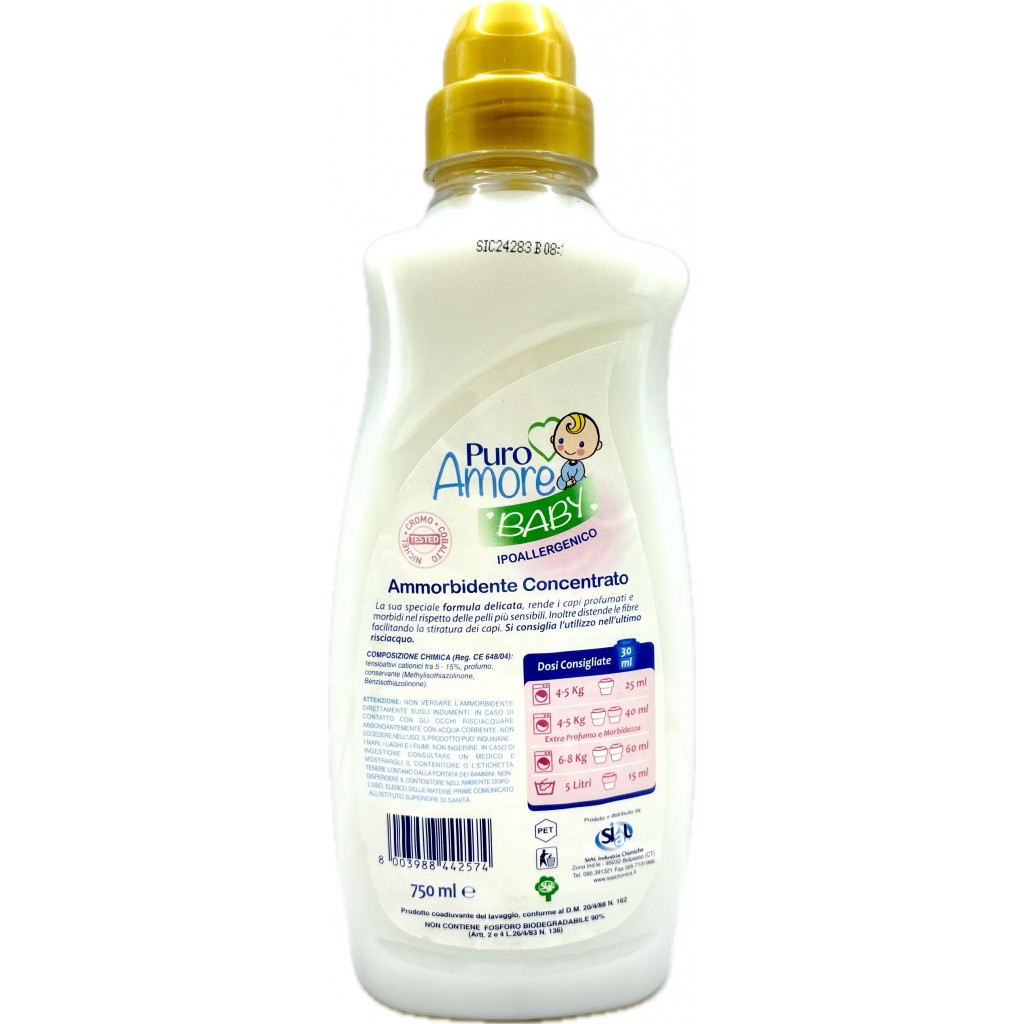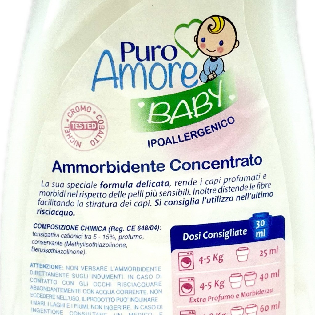 Puro Amore Ammorbidente Concentrato 30 Lavaggi 1500ml - Baby Ipoallergenico