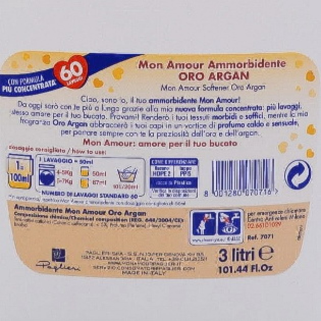 Mon Amour Ammorbidente 60 Lavaggi 3000ml - Oro - Argan