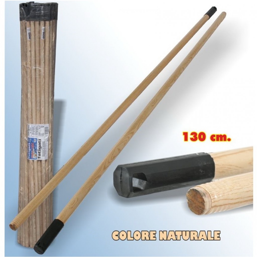 Manico Scopa Legno 130cm Con Appendino - Attacco Universale A Vite