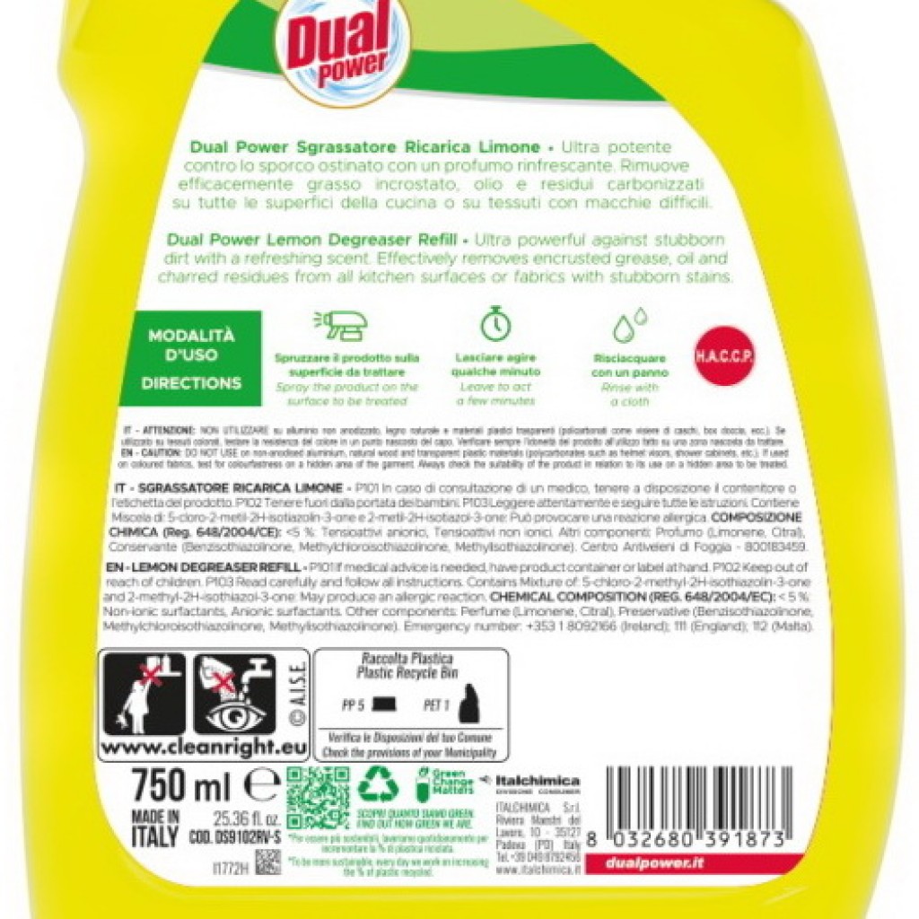 Estendi la ricerca a: multiuso - sgrassatori (no gas), pulizia e cura della casa, dual, power, sgrassatore, universale, spray, 750ml, limone, ricarica