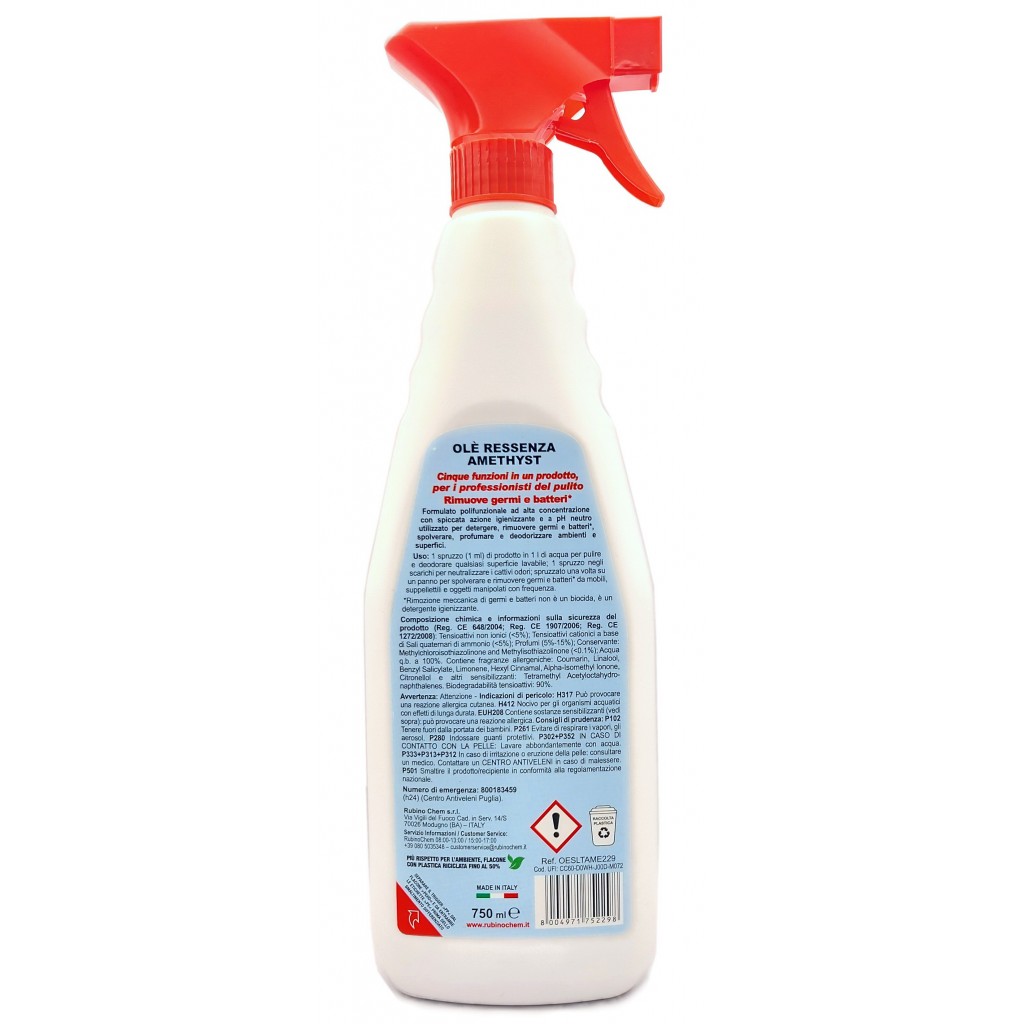Estendi la ricerca a: deodoranti e profumatori per ambienti, pulizia e cura della casa, detergente, desodorizzante, fragranza, profumante, rubino, chem, ole', oies, ressenza, deodorante, multiuso, igienizzante, 750ml, luxury, amethyst