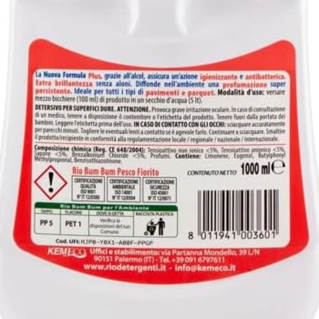 Rio Bumbum Plus+ Detergente Pavimenti - 1 Litro - Pesco Fiorito