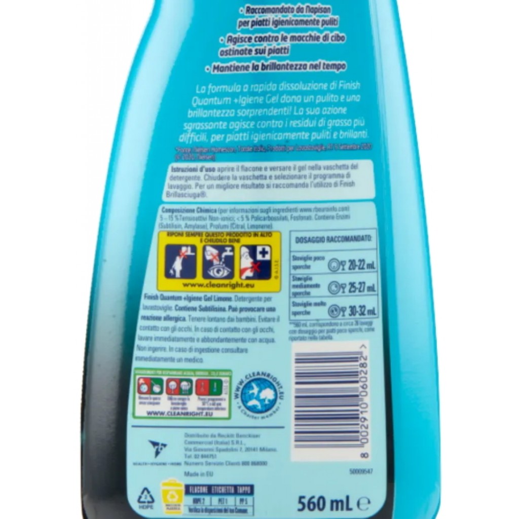 Finish Quantum +igiene Gel Detersivo Lavastoviglie 560ml 26 Lavaggi - Lemon