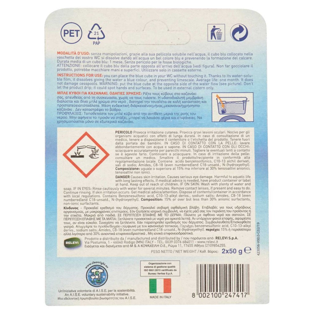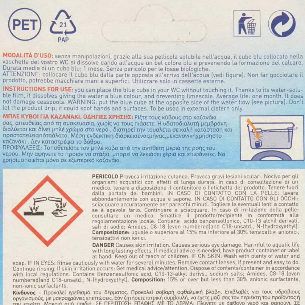 Estendi la ricerca a: detergenti e deodoranti per wc, pulizia e cura della casa, forzablu, acqua, blu, wc, pastiglie, deterge, anticalcare, lunga, durata