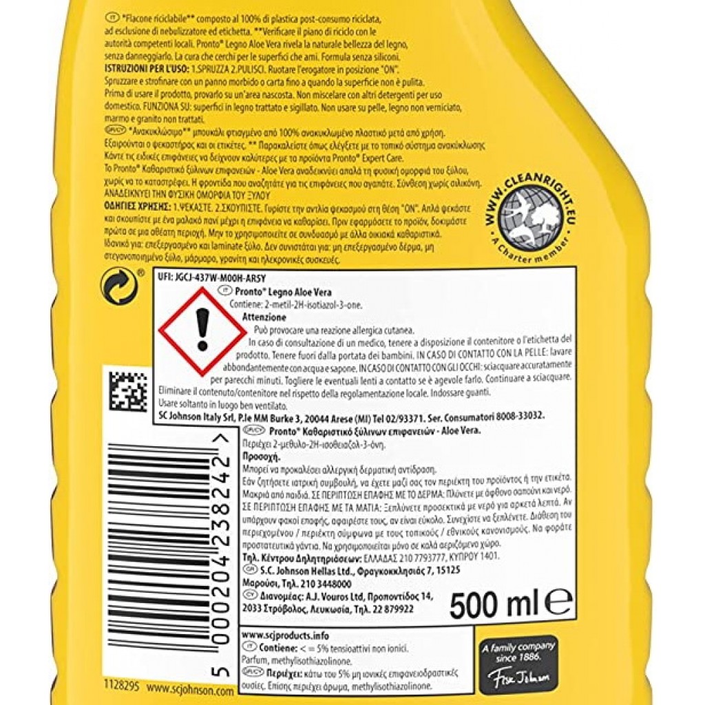 Pronto Detergente Legno Spray 500ml - Con Aloe