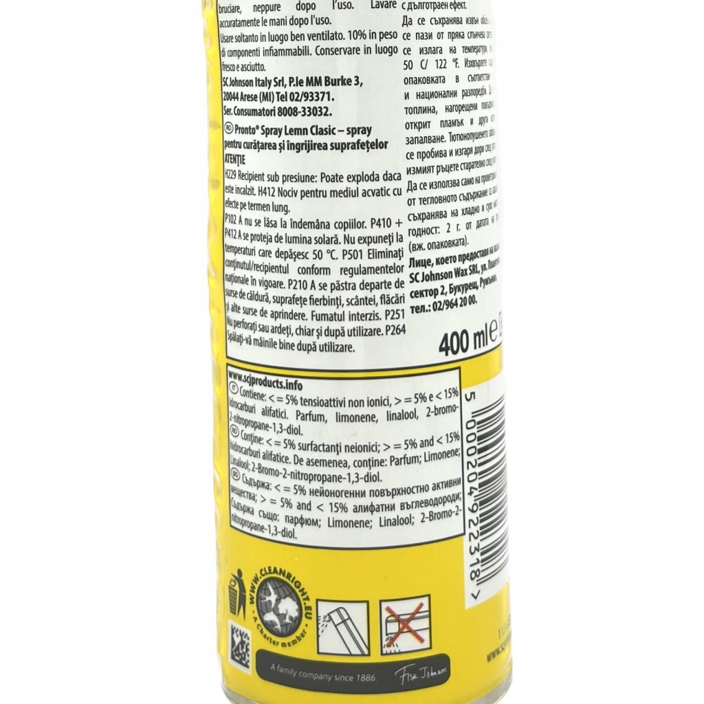 Estendi la ricerca a: multiuso - antipolvere (spray), pulizia e cura della casa, johnson&johnson, pronto, detergente, per, legno, mobili, spray, 400ml, classico