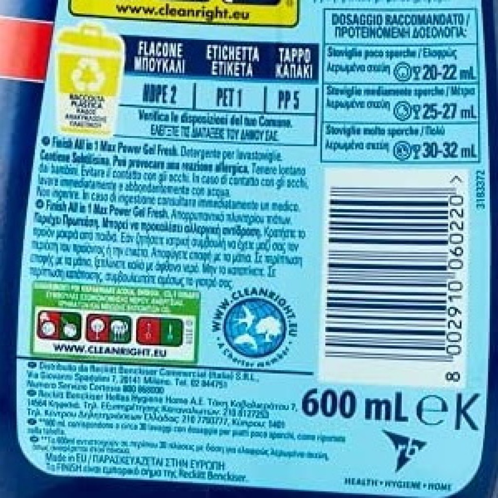 Estendi la ricerca a: prodotti per lavastoviglie, pulizia e cura della casa, finish, power, gel, detersivo, lavastoviglie, 600ml, 30, lavaggi, fresh