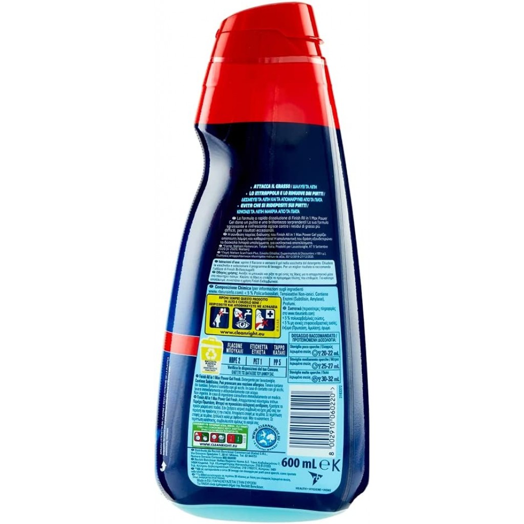 Finish Power Gel Detersivo Lavastoviglie - 600ml 30 Lavaggi - Fresh