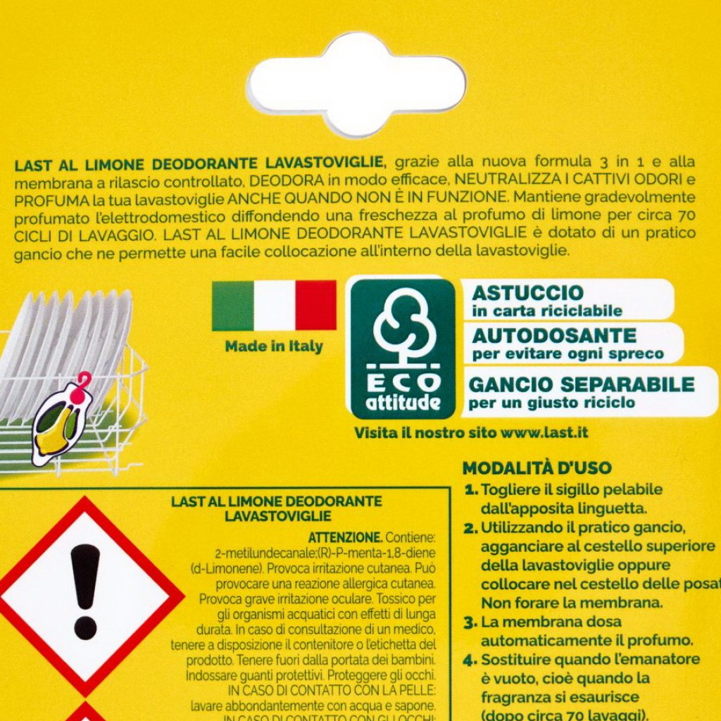 Last Deodorante Per Lavastoviglie - 2 Pezzi - Limone - 140 Lavaggi Totali