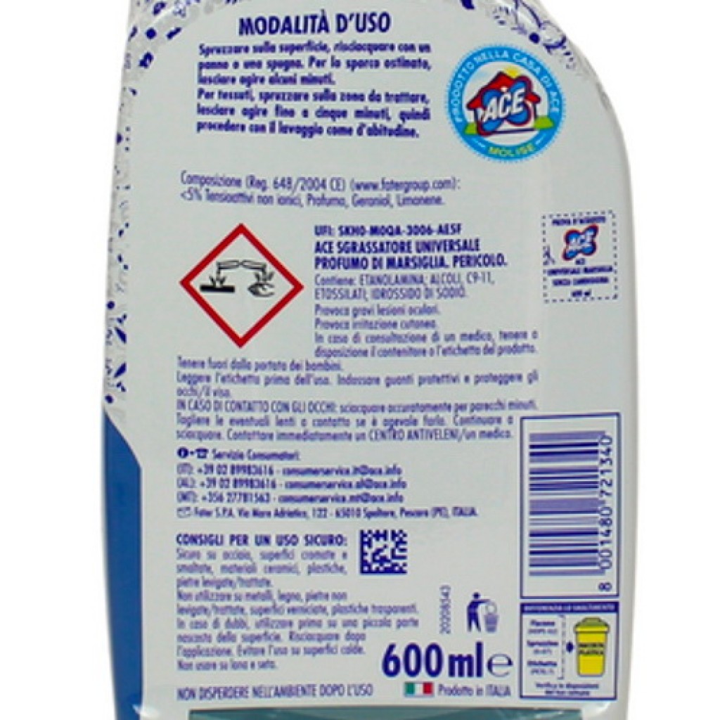 Estendi la ricerca a: multiuso - sgrassatori (no gas), pulizia e cura della casa, ace, sgrassatore, universale, spray, 600ml, senza, candeggina, marsiglia