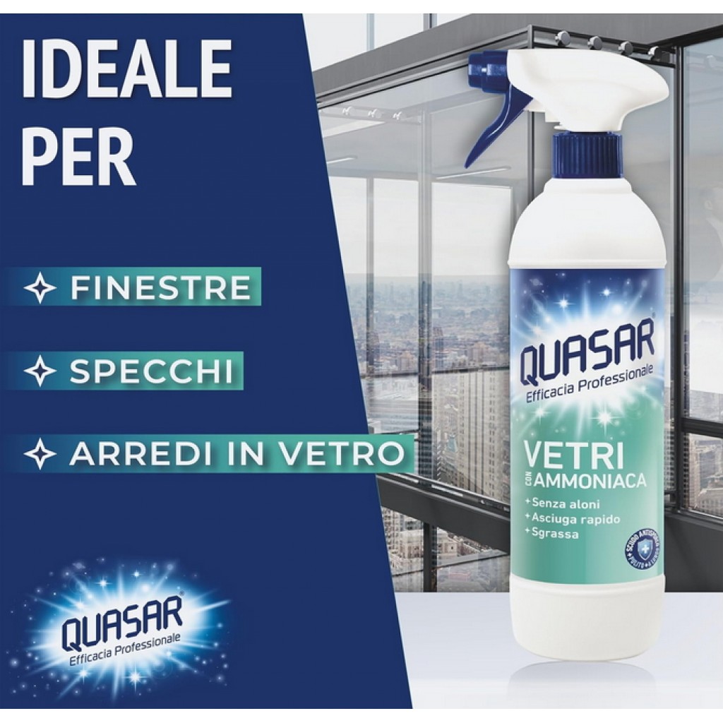 Quasar Vetri Detergente Spray - 680ml Erogatore - Con Ammoniaca