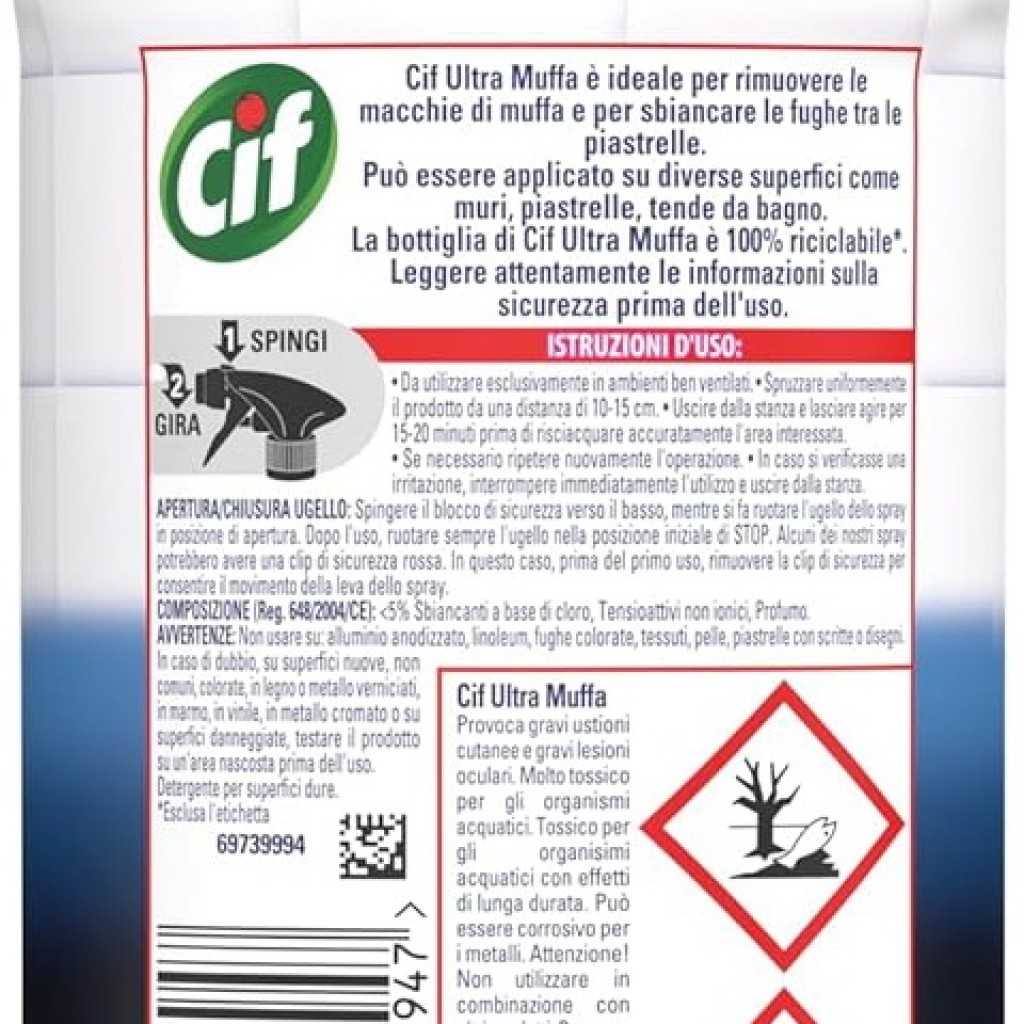 Estendi la ricerca a: multiuso - sgrassatori (no gas), pulizia e cura della casa, cif, ultra, muffa, antimuffa, spray, 500ml, per, muri, fughe
