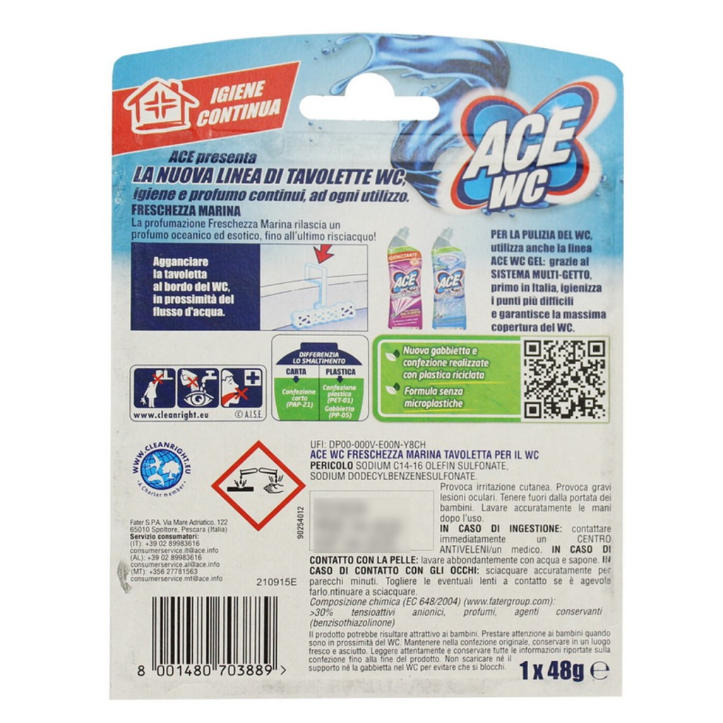 Estendi la ricerca a: detergenti e deodoranti per wc, pulizia e cura della casa, ace, wc, tavoletta, deodorante, igienizzante, 48g, freschezza, marina