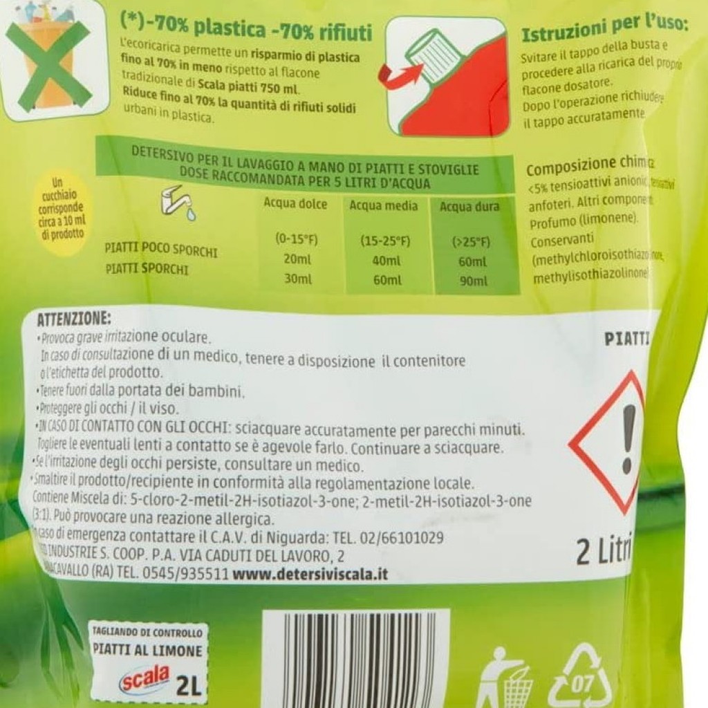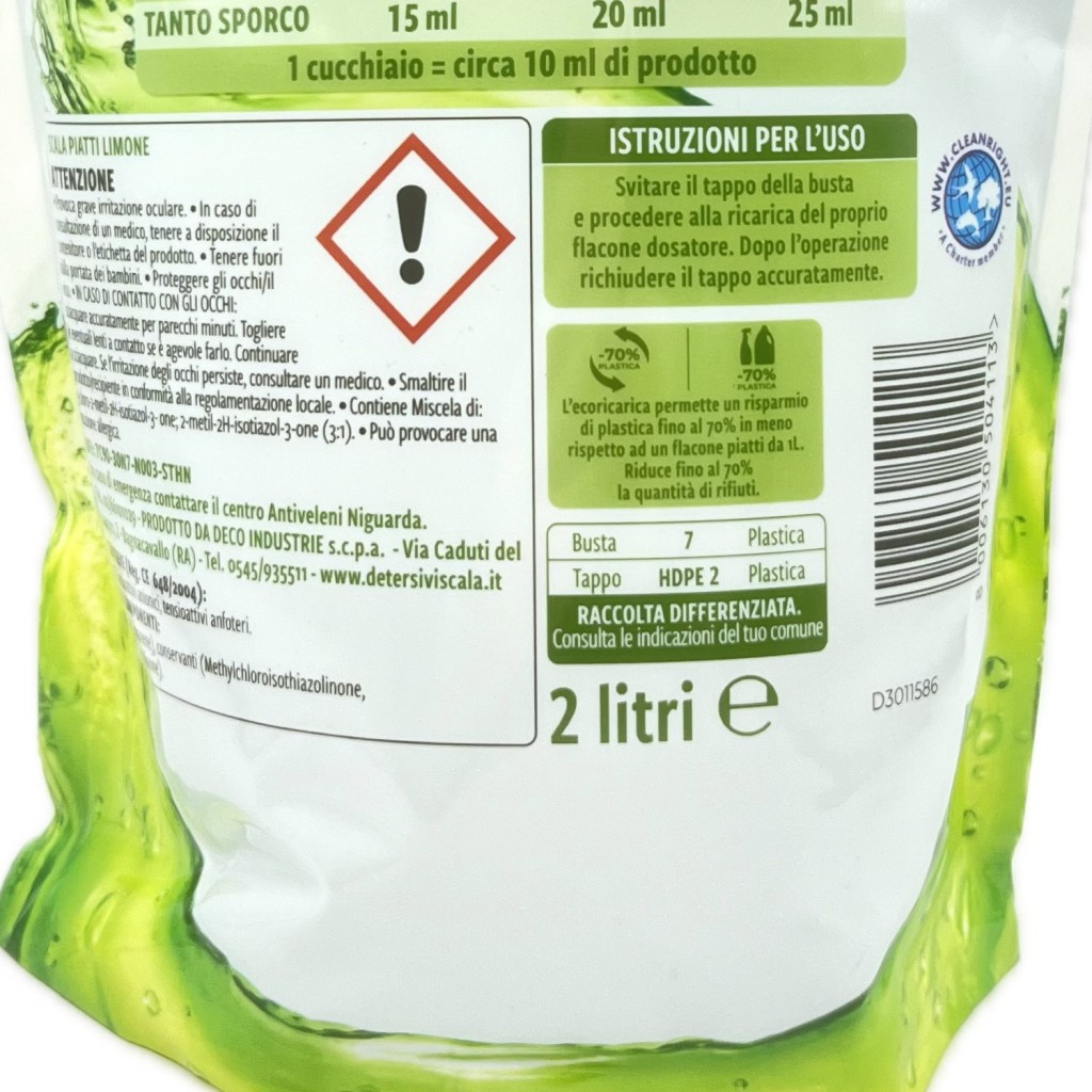Scala Detersivo Liquido Per Piatti A Mano - Ecoricarica Da 2 Litri - Limone