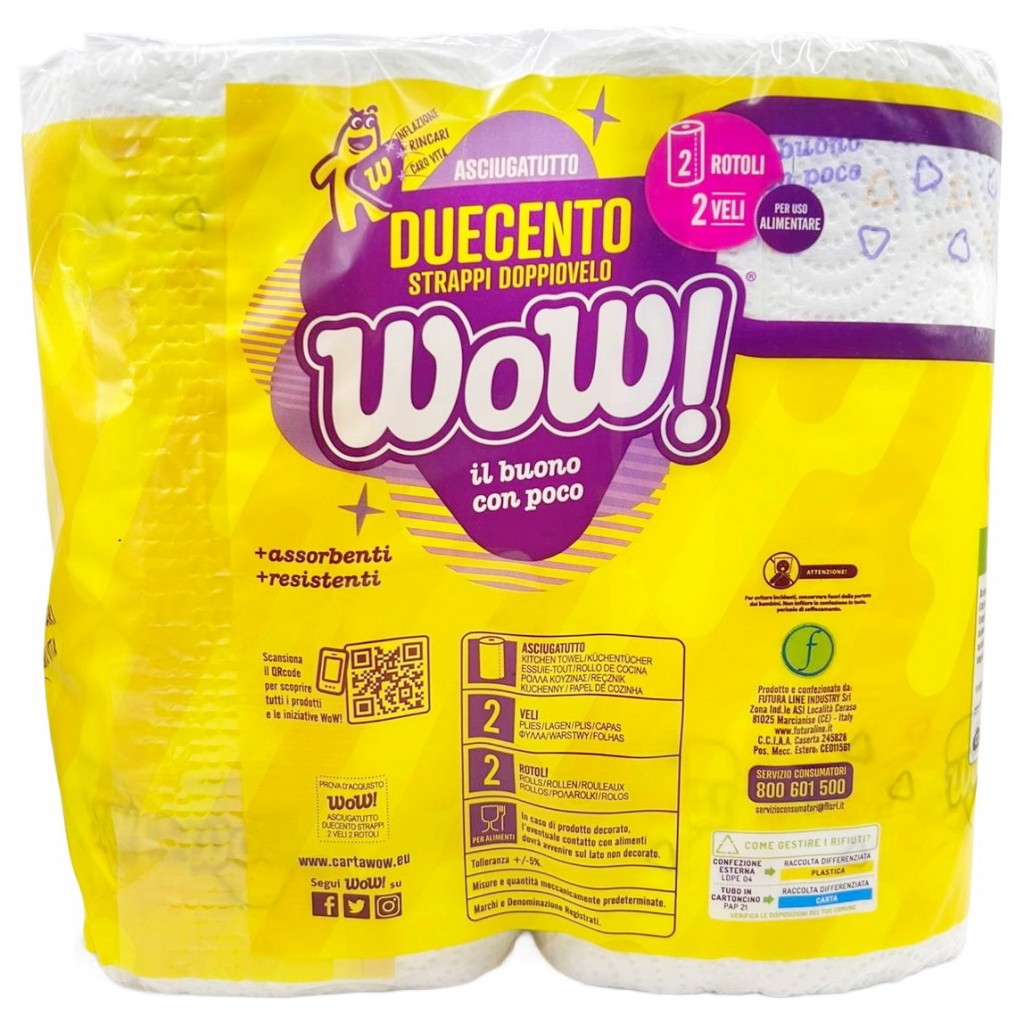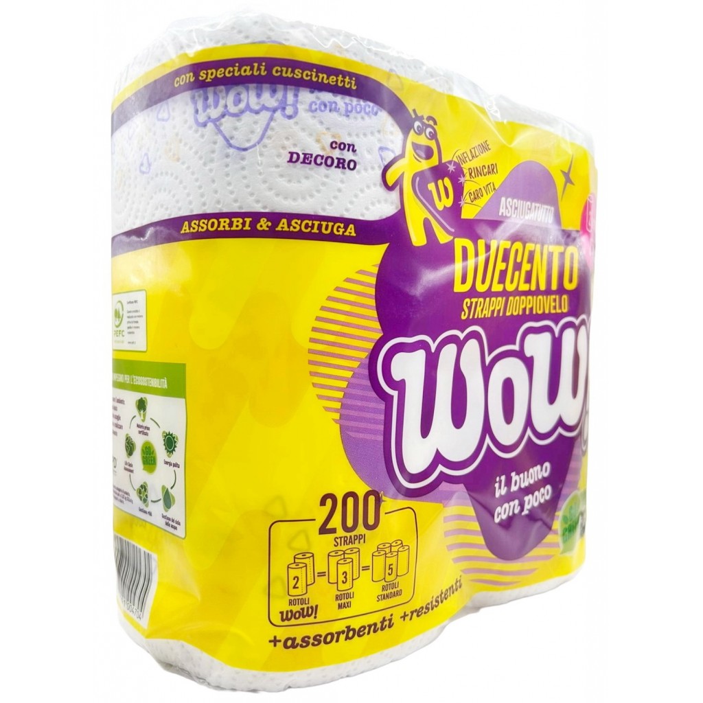Wow Duecento - Carta Asciugatutto - 2 Rotoli - 200 Strappi