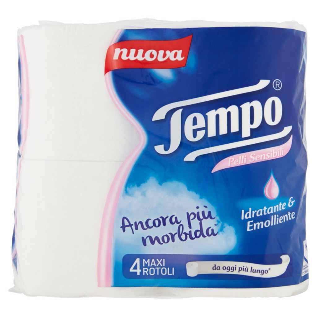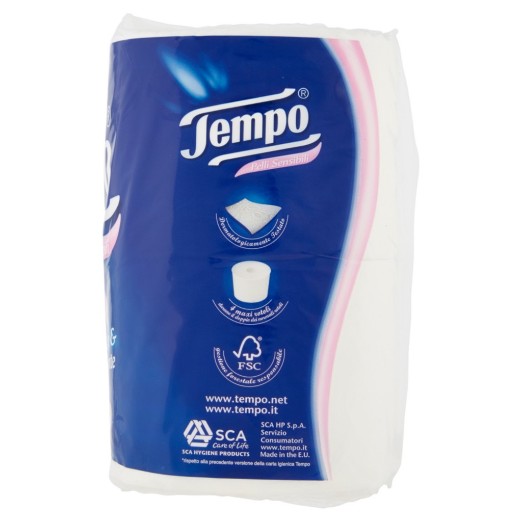 Tempo Carta Igienica - 4 Maxi Rotoli - Pelli Sensibili Idratante Emolliente