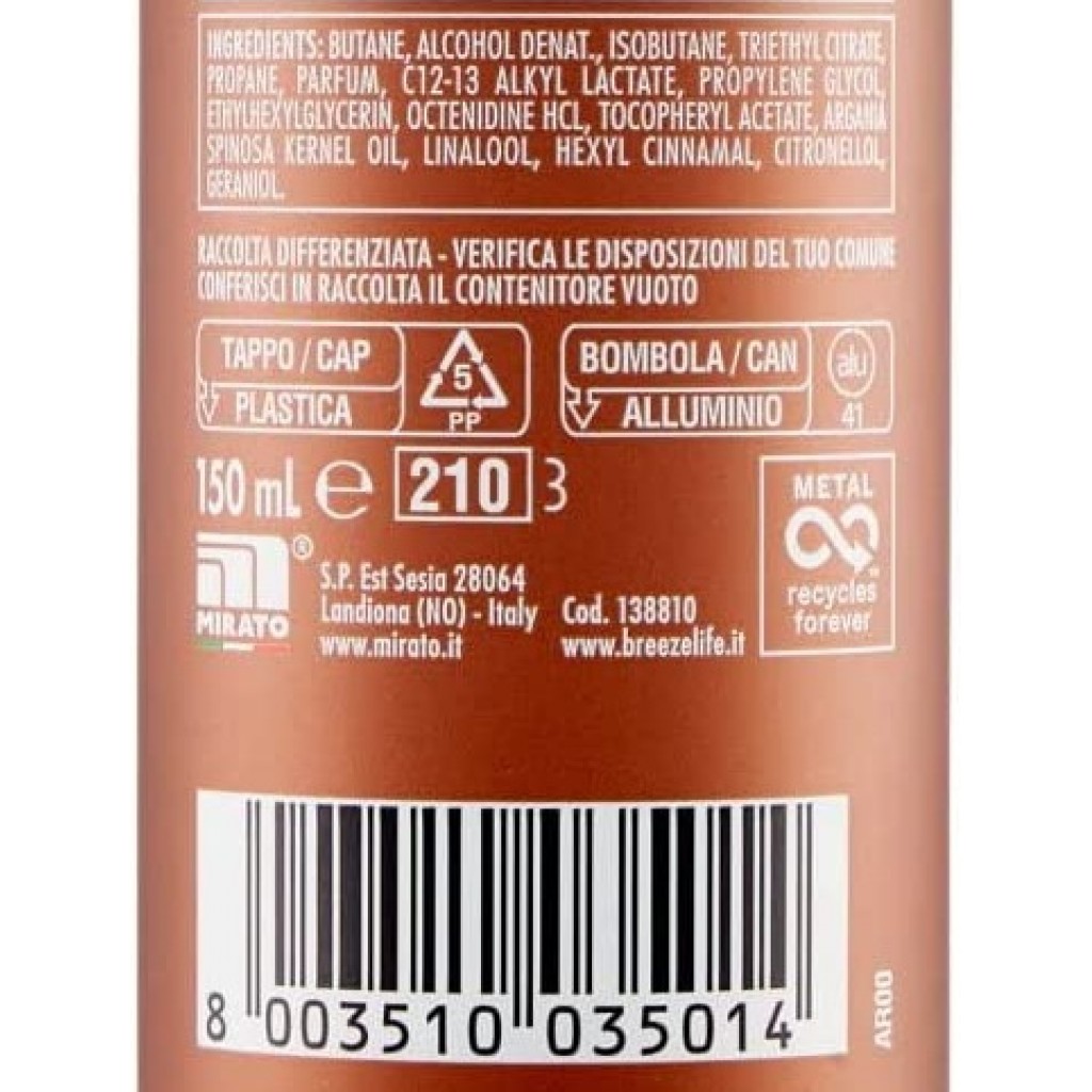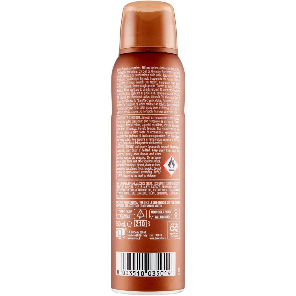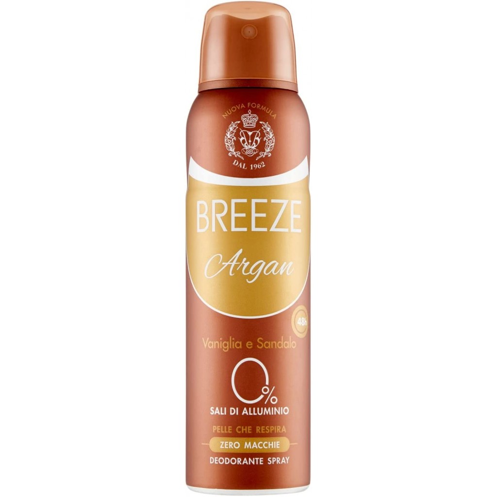 Breeze Deodorante Spray - 150ml - Argan - Vaniglia E Sandalo - Zero Macchie