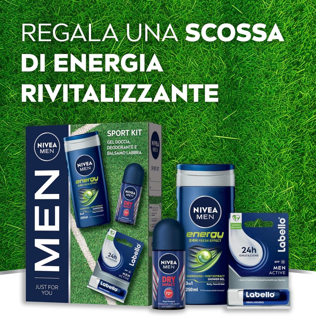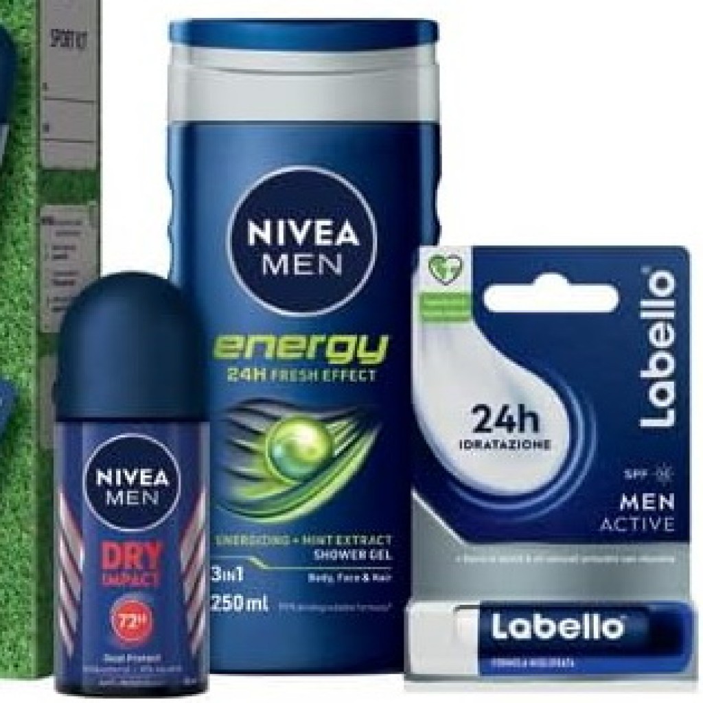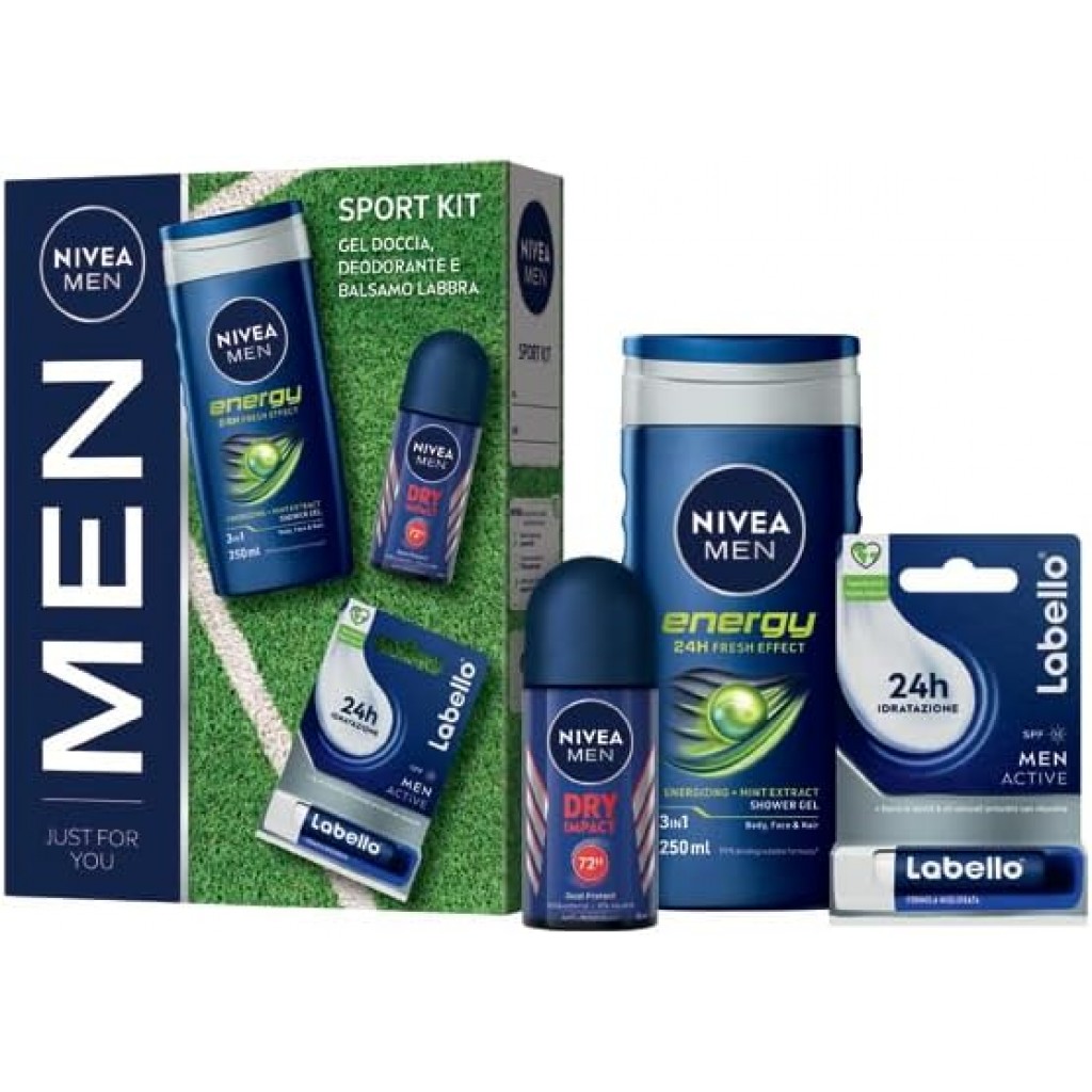 Estendi la ricerca a: confezioni speciali e idee regalo, igiene e cura della persona, nivea, men, sport, cofanetto, deo, roll, on, doccia, 250ml, labello