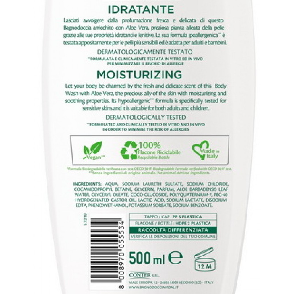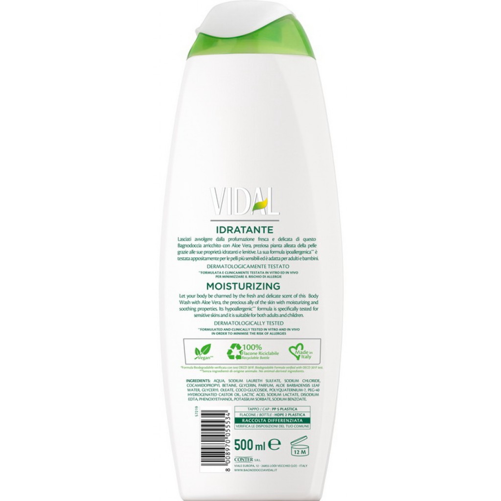Vidal Bagnodoccia 500ml - Idratante - Aloe Vera